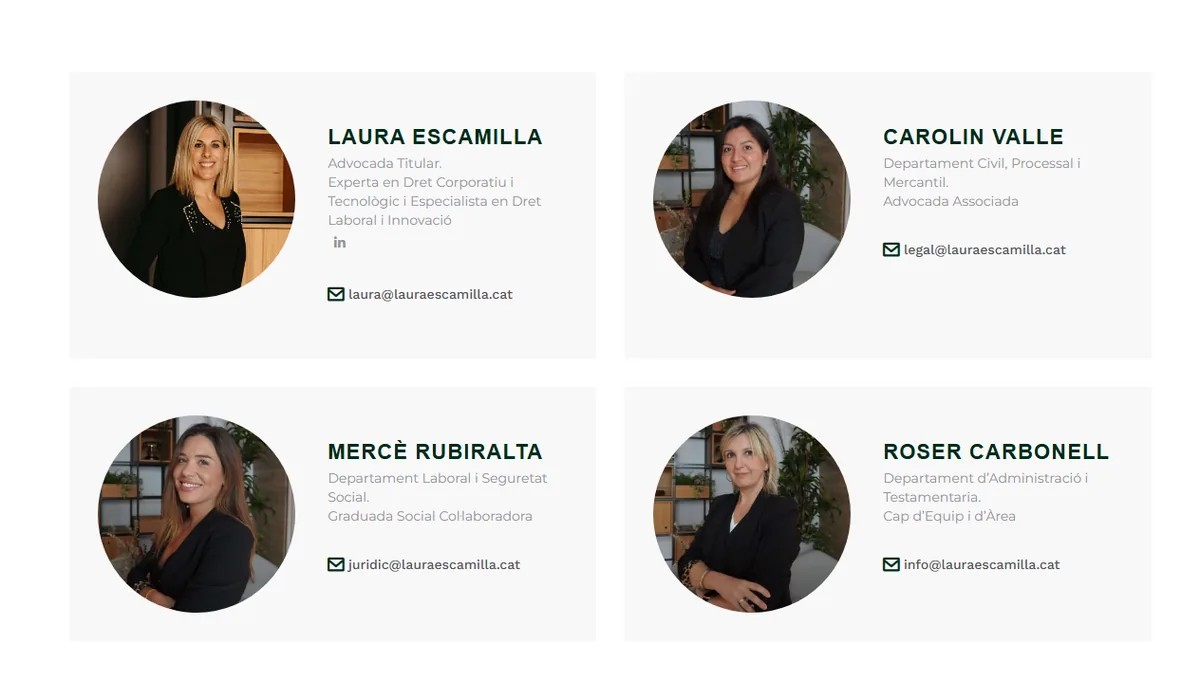 Part del nostre equip ha evolucionat i actualment, a 2025, Laura Escamilla· Boutique Legal està format pels següents professionals: La Carolin Valle,...